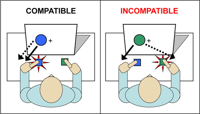 #> [1] 0.6324545 0.6356682The Simon effect is the difference in accuracy or reaction time between trials in which stimulus and response are on the same side and trials in which they are on opposite sides, with responses being generally slower and less accurate when the stimulus and response are on opposite sides.
